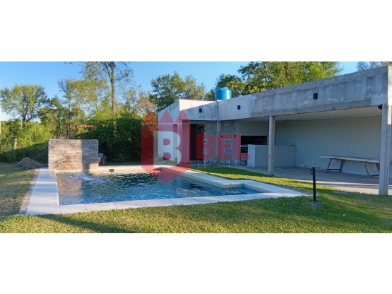 Encantadora casa en esquina con quincho y pileta, ideal para disfrutar en familia. Se encuentra sobre un terreno de 800 m² (20x40), con 91 m² construidos distribuidos en 2 dormitorios, cocina integrada al comedor y un baño completo.