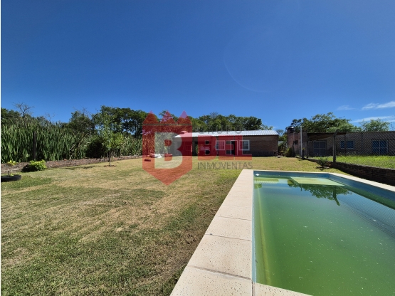Gran parque al frente con pileta con tejido perimetral y tranquera de acceso.